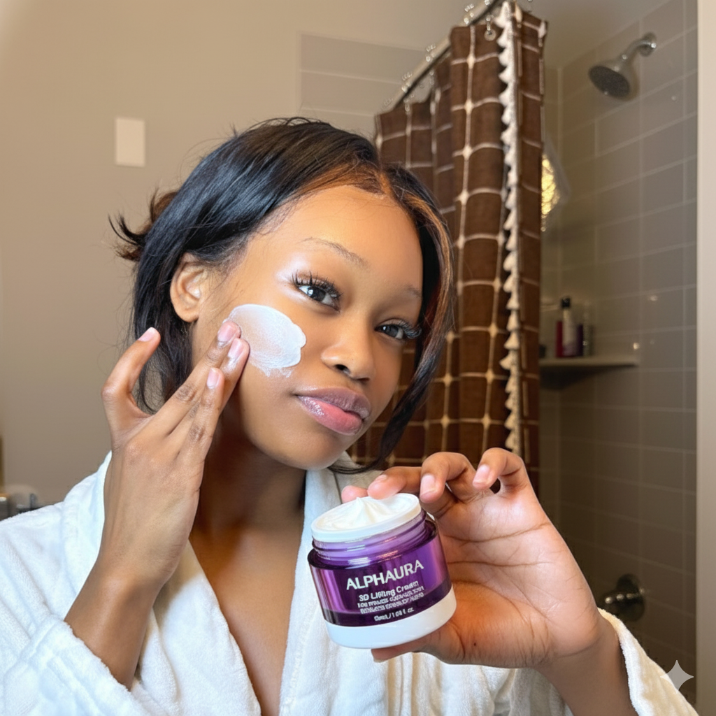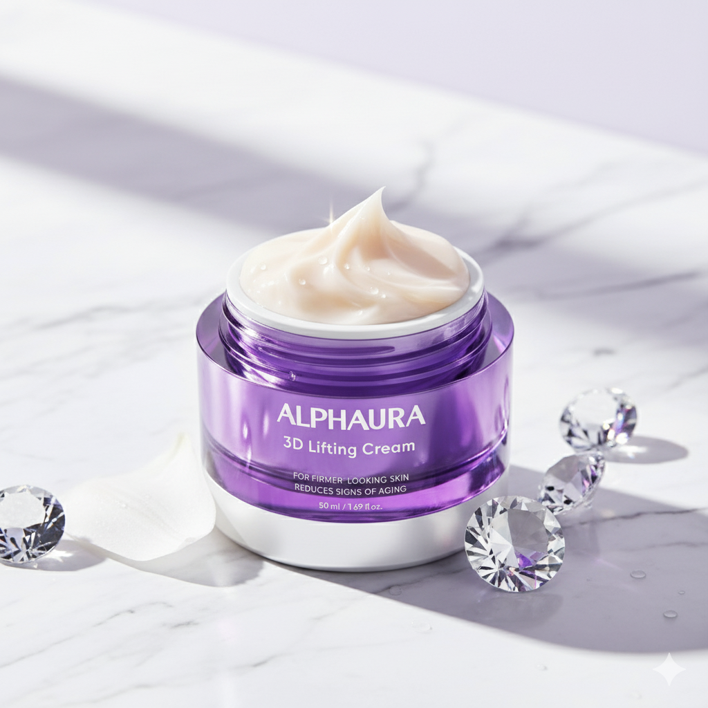 Alphaura’s 3D Lifting Cream goes beyond hydration. The 3D matrix technology visibly lifts sagging cheeks and defines the jawline.
